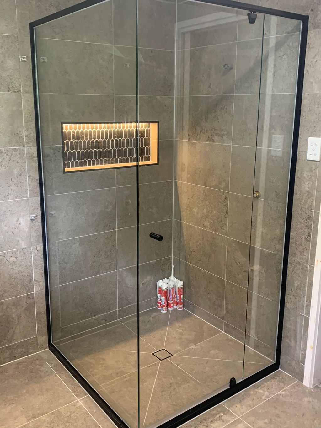 Removal of existing shower screen & then we built & installed this semi frameless shower screen.