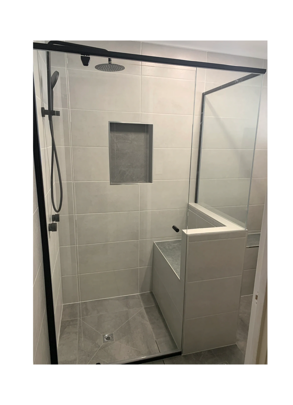 Removal of existing shower screen & then we built & installed this semi frameless shower screen giving the entire bathroom a modern uplift.